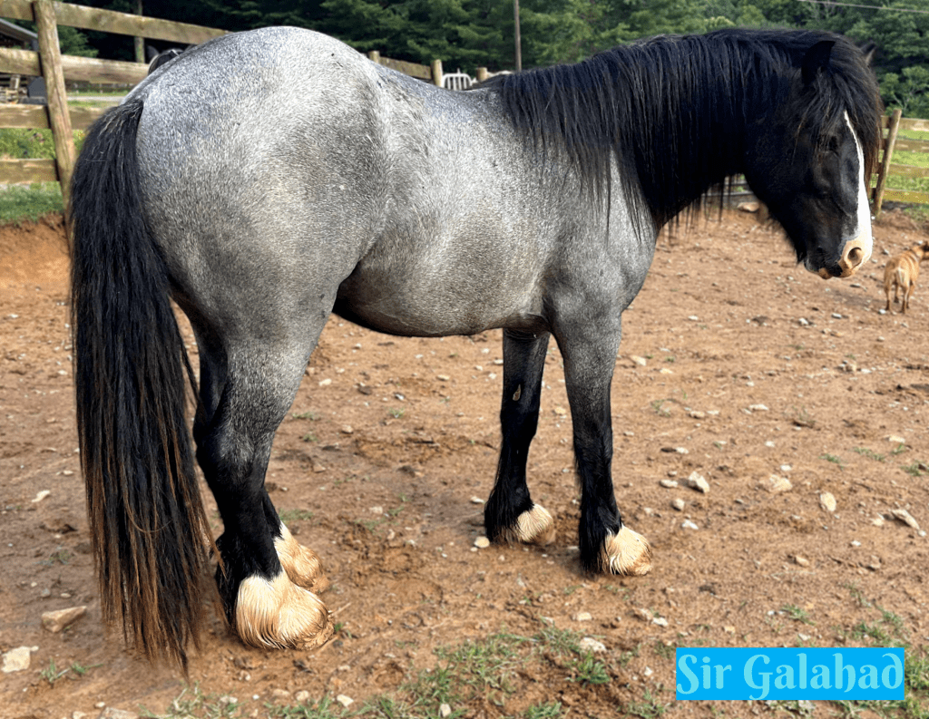 Here is a pretty blue boy who does not have roan lines common to most roans in the USA! Double bred The Business (The Boss). Gentle and ready to travel, reasonably priced for a breeding age roan colt!
