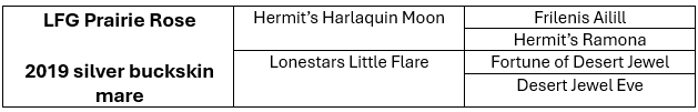 Look at this stunning girl in America’s favorite color, buckskin, plus the added bonus of silver! Rose is started under saddle and would not be hard to finish your way. She has had 1 beautiful foal, a filly, and was an outstanding mom. Her sire is a superb show stallion who steals the spotlight wherever he goes! Rose is ready to travel and steal your heart.