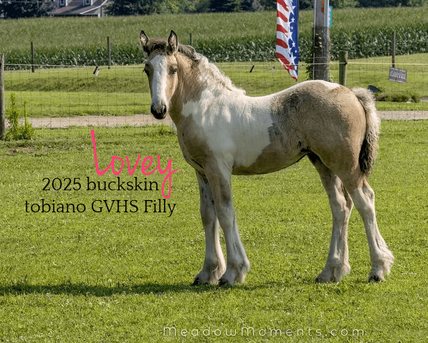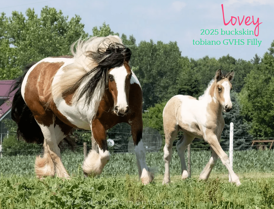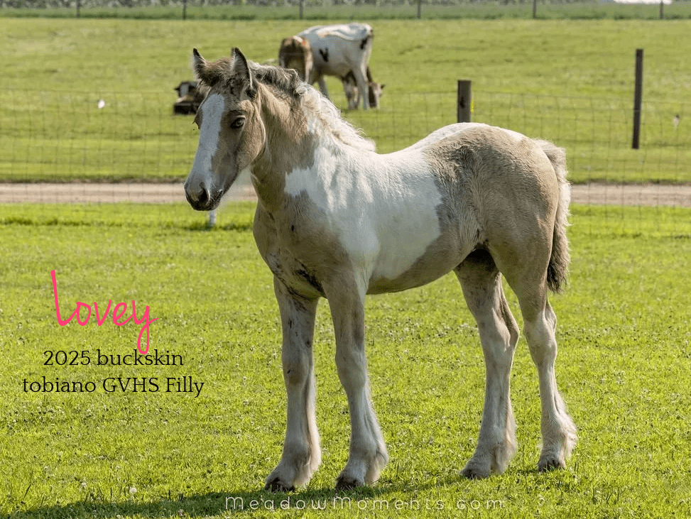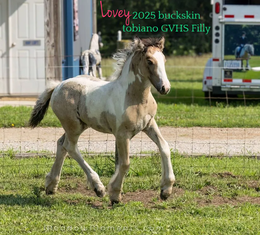 - Color: buckskin tobiano (Ee Aa CR Tt)