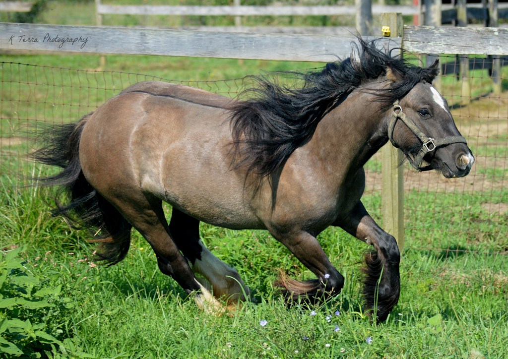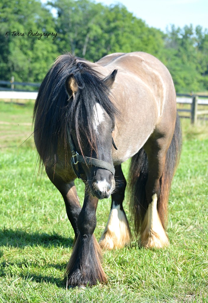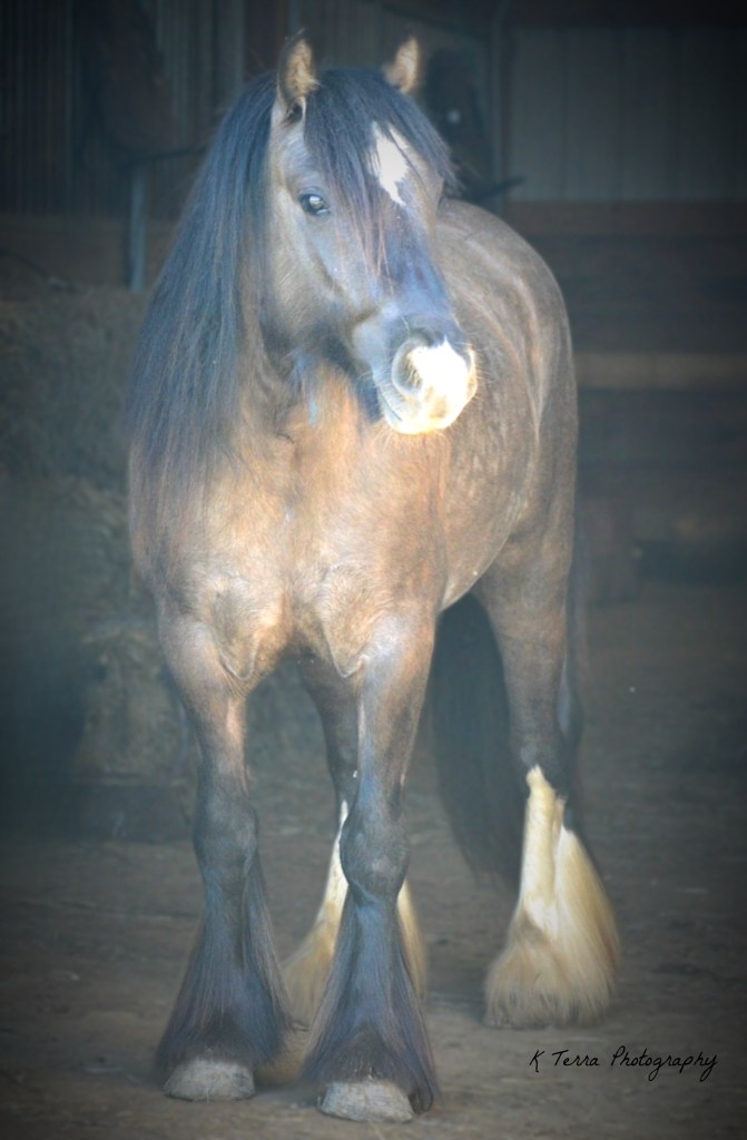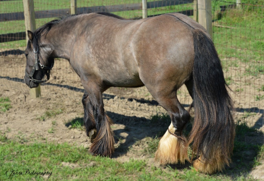 Are you dreaming in dun?! This stunning girl is literally dun royalty! Sired by the incredible Starfire’s The Monarch and out of an amazing Brackenhill mare. This filly knows that she is beautiful and I captured so many photos of her that she could have several albums! She would be such a standout in the show-ring and will make an irreplaceable broodmare in the future. You do not see such a quality dun mare on the market often, and she’s just 2, so you know her future is bright! Her owner is willing to let her come back for a live cover breeding to the only known smoky black pearl roan gypsy vanner stallion in the breed, who is not available to the public.