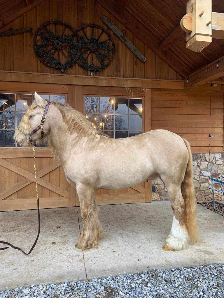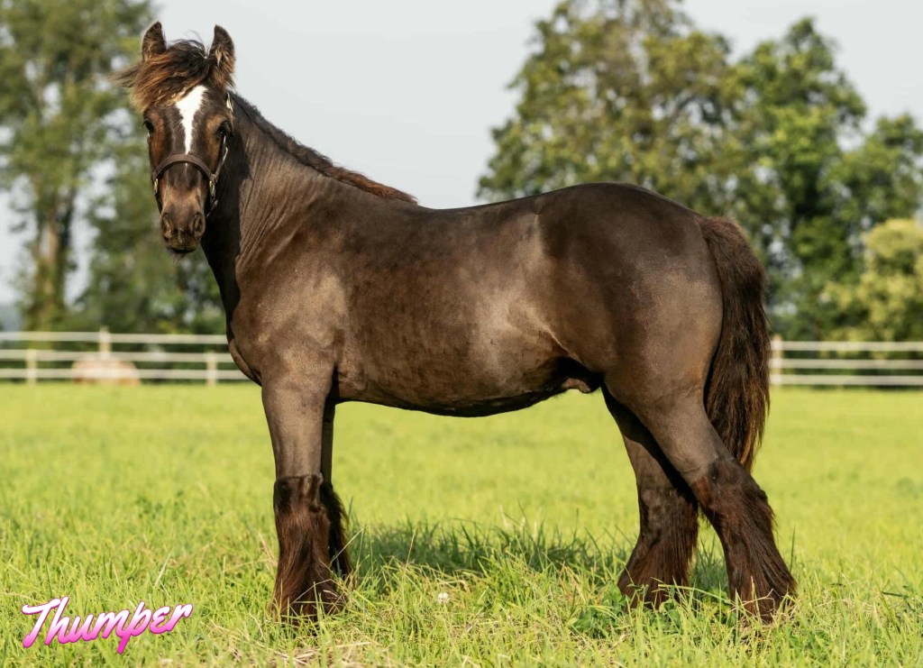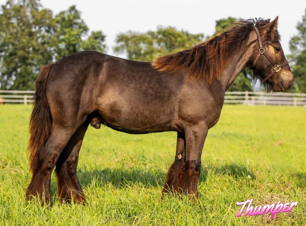This boy is classy, beautiful, and p-r-i-c-e-d right! His sire is an absolutely beautiful imported stallion from the famous San Cler herd, and his dam has some lovely names to back up her proper build, including The Teddy Mare and The Coal Horse. “Thumper” is ready to go and make your gypsy dreams come true!